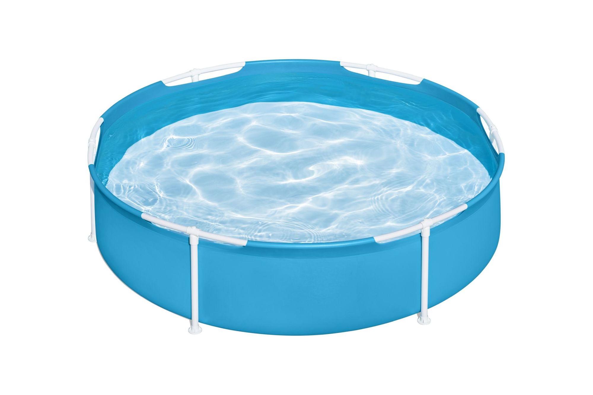 Der Bestway My First Frame Pool Kinderpool Ø 152 x 38 cm blau rund ist ein kompakter Einstiegs-Pool für kleine Wasserratten. Der runde Aufstellpool mit stabiler Stahlrohrkonstruktion und robuster PVC-Folie bietet Kindern ab etwa 2 Jahren eine erfrischende Abkühlung im eigenen Garten und lässt sich schnell und ohne Werkzeug aufbauen.