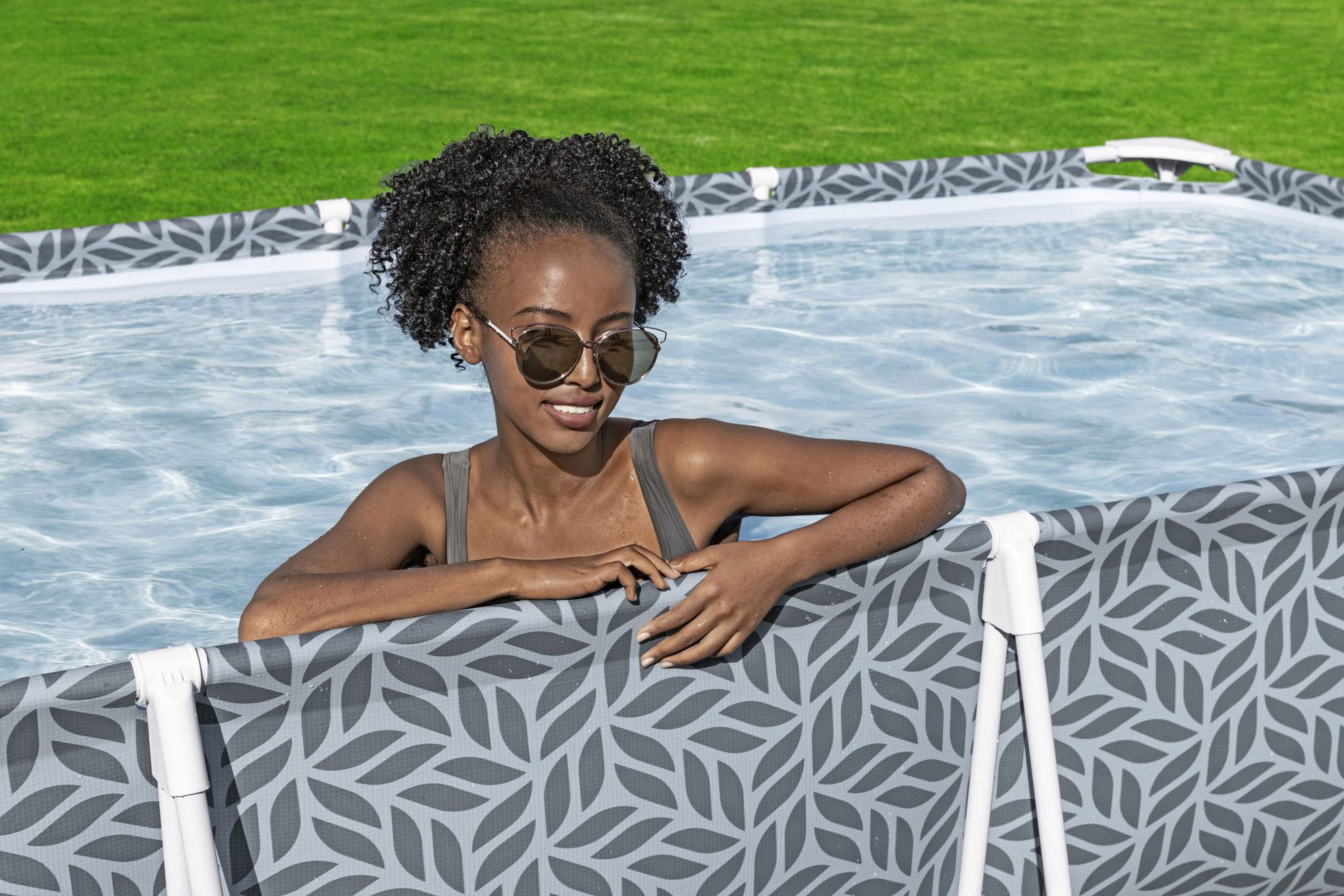 ## Stabile Konstruktion mit TriTech-Folie und Steel Pro Rahmen Die Poolwände bestehen aus einem 3-lagigen TriTech-Material, das aus zwei PVC-Schichten und einem Polyester-Mesh-Kern aufgebaut ist. Diese Kombination sorgt für widerstandsfähige, formstabile Seitenwände, die auf den saisonalen Einsatz im Freien ausgelegt sind. In Verbindung mit dem Stahlrohrrahmen entsteht eine robuste Konstruktion, die die Wassermenge zuverlässig trägt. Der Rahmen ist mit dem FrameLink System ausgestattet, bei dem die Rohre über Steckverbindungen und T-Verbinder aus Kunststoff miteinander verbunden werden. Dadurch lässt sich der Rahmen schrittweise aufbauen und stabilisieren. Eine Antihaftbeschichtung unterstützt den Korrosionsschutz und trägt zu einer langlebigen Optik der Rahmenteile bei.