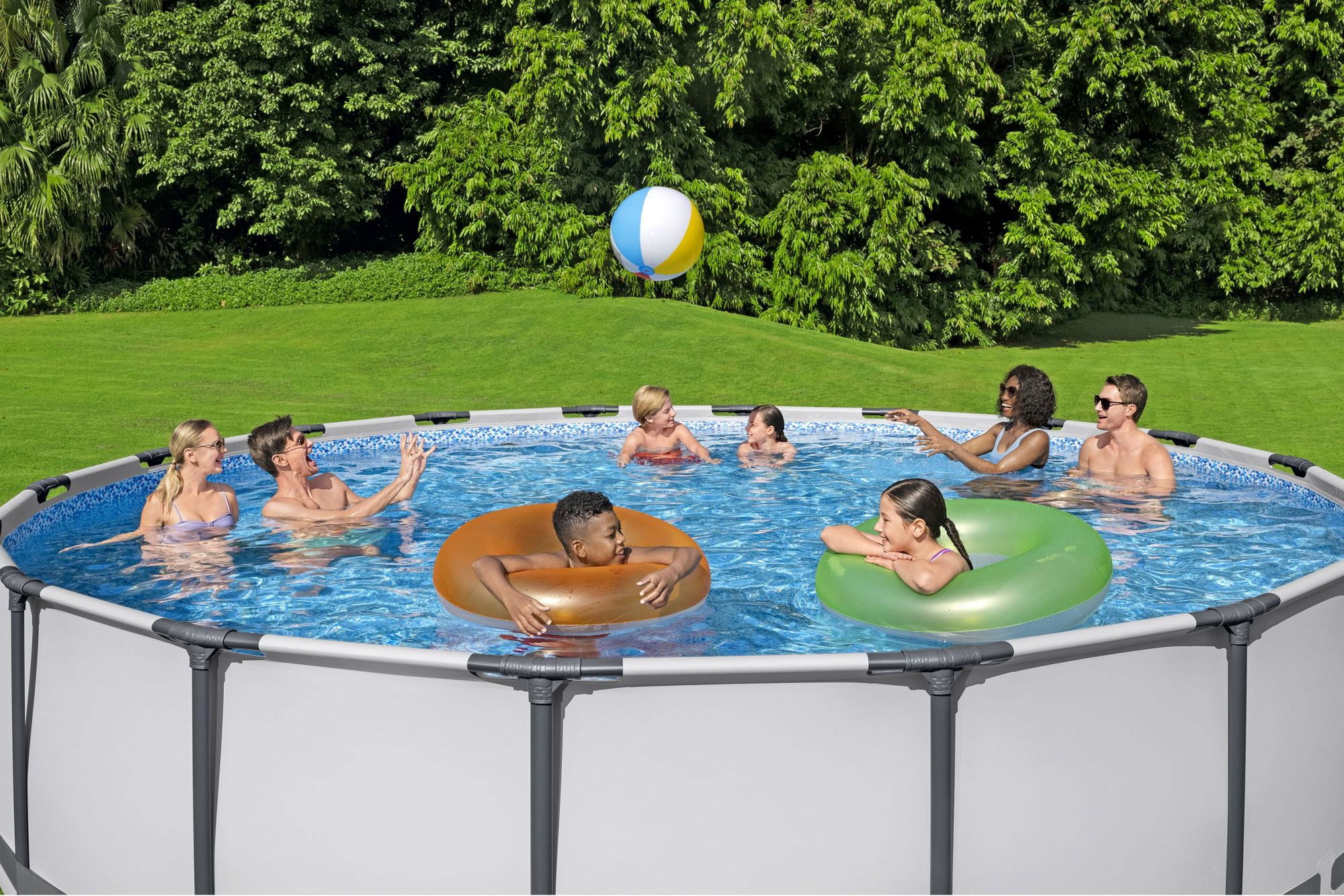 Das Bestway Steel Pro MAX Frame Pool Komplett-Set Ø 488 x 122 cm bietet viel Badespaß im eigenen Garten. Der große Rundpool in lichtgrau kombiniert einen robusten Stahlrahmen mit TriTech-Poolfolie und passender Filterpumpe und ist damit eine praktische Komplettlösung für Familien.