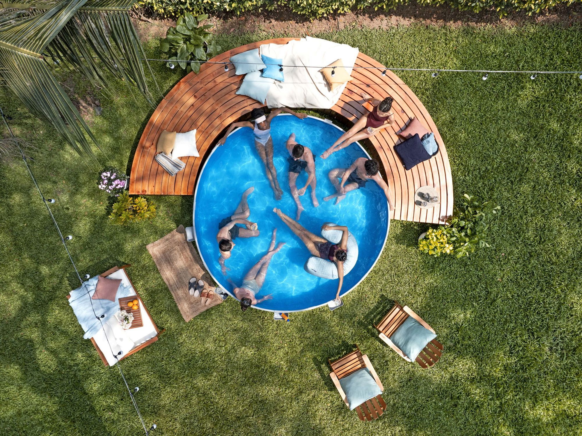 - Zubehör im Lieferumfang: Filterpumpe, Filterkartusche, PVC-Abdeckplane, Halterung für bis zu 4 Getränke, selbstklebender Reparaturflicken