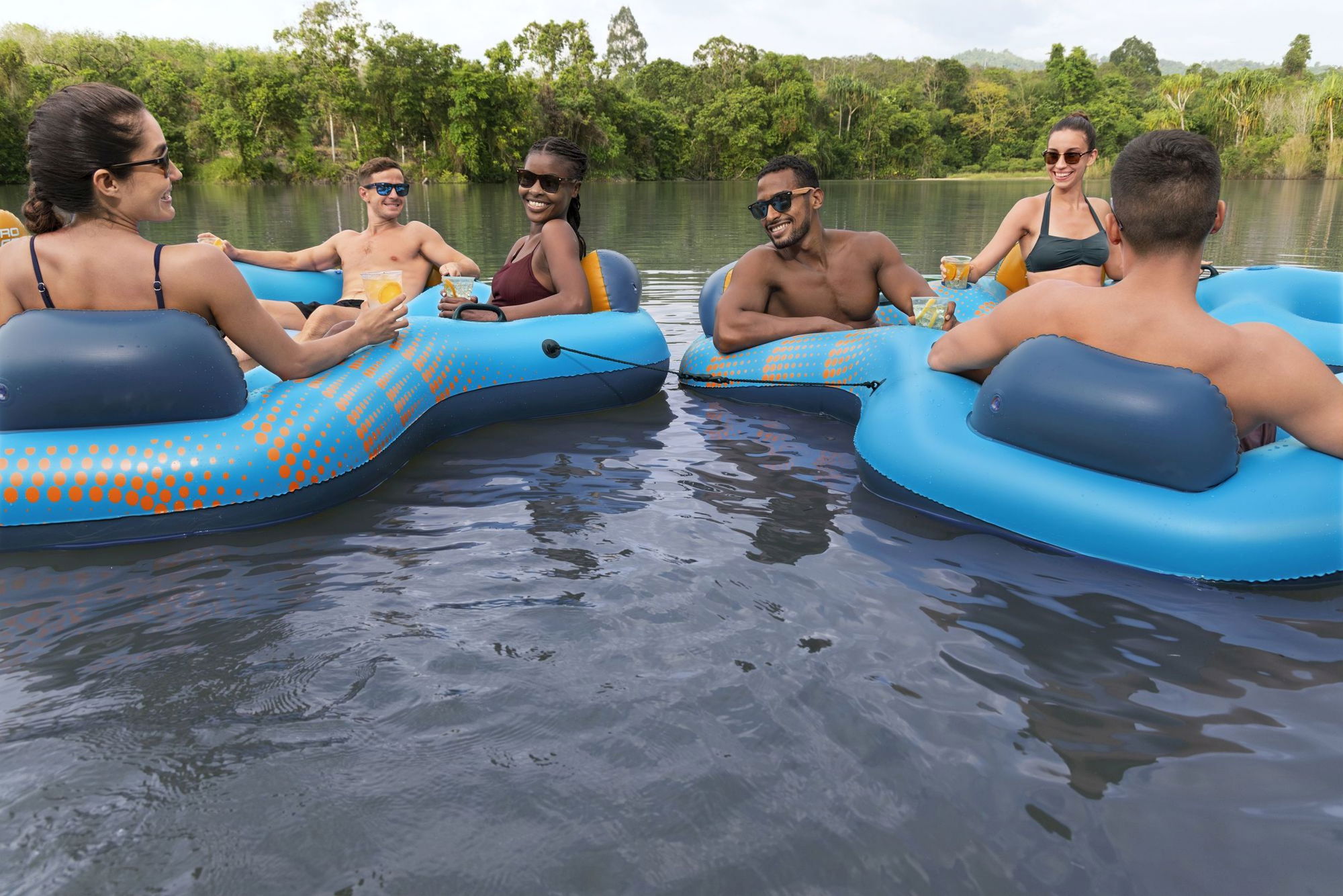 Die Bestway Badeinsel Day Drifter 279 x 269 x 43 cm bietet Ihnen eine großzügige Loungefläche für entspannte Stunden auf See oder im großen Pool. Die aufblasbare Insel ist für bis zu 5 Personen ausgelegt und kombiniert reißfestes Inflata Shield Material mit komfortablen Sitzen, Rückenlehnen und praktischen Getränkehaltern.