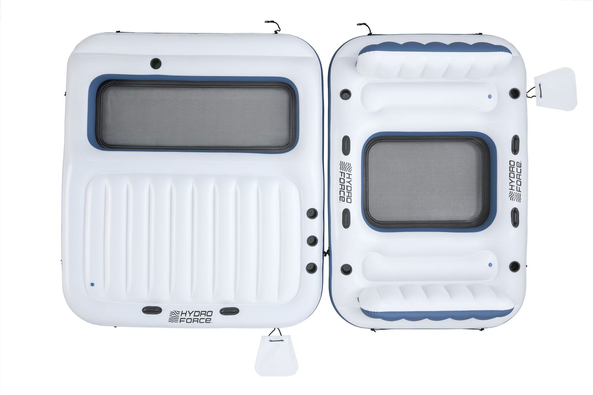 ## Einfache Handhabung auf See oder im Pool Die Bestway Badeinsel Poolparty lässt sich mit einer geeigneten Luftpumpe (nicht im Lieferumfang enthalten) schnell aufpumpen. Praktische Schnellverschlussventile unterstützen einen zügigen Auf- und Abbau. Nach dem Einsatz kann die Luft ebenso schnell wieder abgelassen werden, sodass die Insel im Anschluss platzsparend verstaut werden kann. Mit den Clasp 'N Go-Schnallen lässt sich die Insel bei Bedarf mit weiteren Badeinseln derselben Serie verbinden – ideal, wenn mehrere Gruppen gemeinsam auf dem Wasser entspannen möchten. Zwei Ankertaschen helfen dabei, die Position der Insel zu sichern, damit sie nicht unkontrolliert abtreibt.