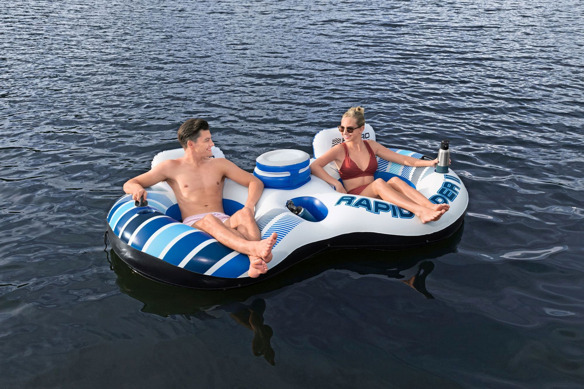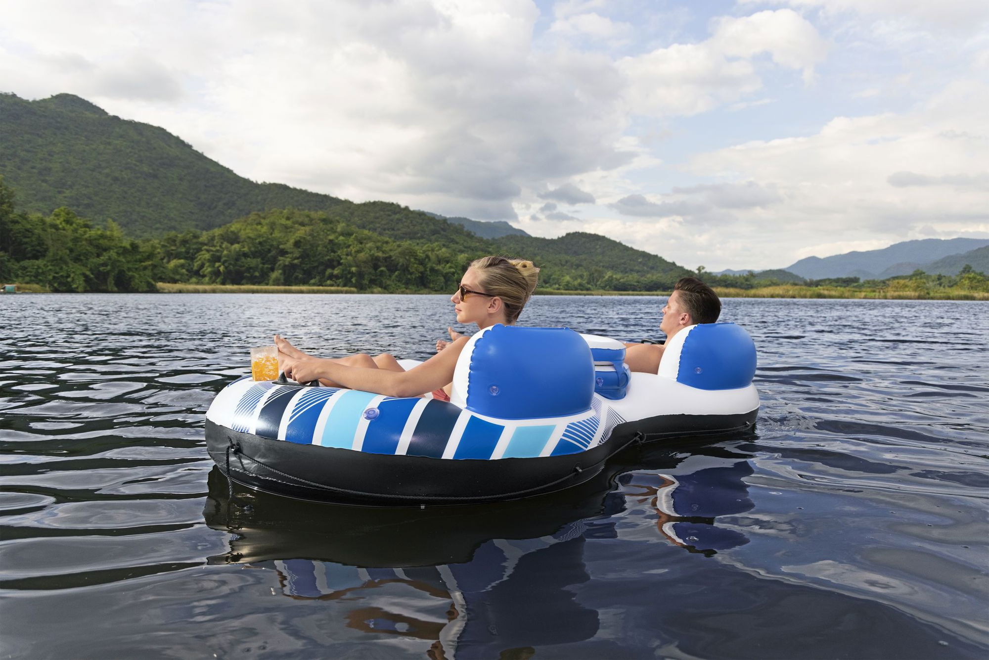 Der Bestway Hydro Force 2-Personen-Schwimmring Rapid Rider II 251 x 132 cm bietet Ihnen komfortablen Badespaß auf See oder im großen Pool. Mit integrierten Rückenlehnen, Netz-Sitzflächen, robusten Haltegriffen und praktischen Getränkehaltern genießen zwei Personen entspannte Stunden auf dem Wasser.