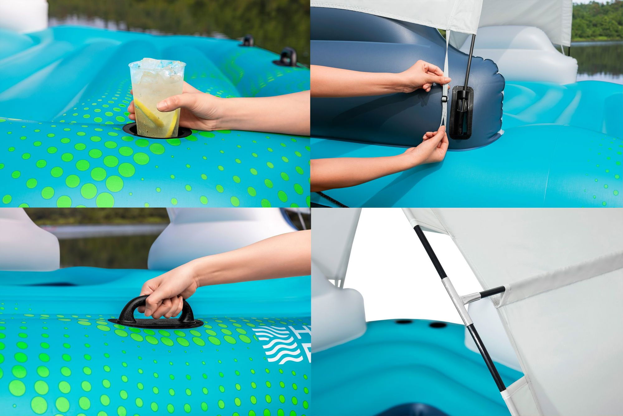 Die Bestway Hydro Force 5-Personen-Badeinsel Sonnenlounge 280 x 257 x 81 bietet Ihnen eine großzügige Relax-Zone auf See oder im großen Pool. Dank strapazierfähigem PVC mit Color Shield Beschichtung, abnehmbarem Sonnendach, drei Rückenlehnen, Getränkehaltern und halbumlaufender Halteleine genießen bis zu fünf Personen entspannte Stunden auf dem Wasser.