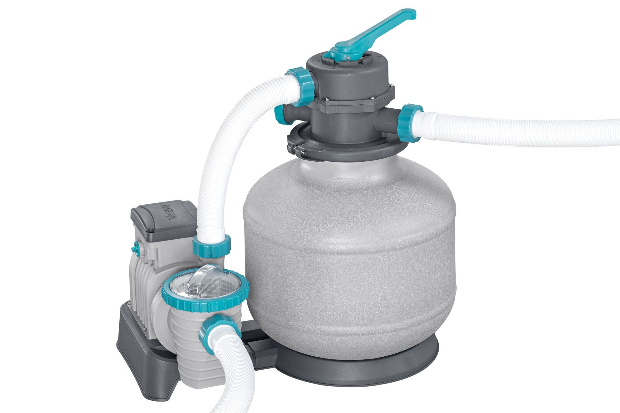 - Lieferumfang: Sandfilteranlage, 2 Schläuche à 4,5 m, Adapter für Ø 32 mm, 1 Pool-Einlassdüse, 1 Pool-Auslassdüse